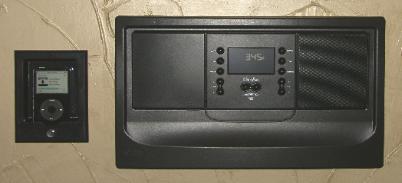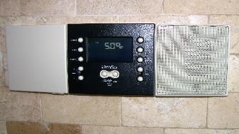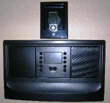 To the left is the finished replacement for the Intercom above complete with a 6 Disc CD Changer, Digital Tuner with Station Presets and an Auxiliary Input Jack for an I-Pod. There are also 2 volume control switches on the custom made faceplate to control speakers in other locations. |