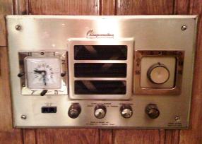 Bet you haven't seen this one before. This unit was installed in 1959! This Intercom is very large and is roughly 1.5 times as wide and twice as tall as the intercoms from the mid eighties and it's over 3 times the size of our current intercoms. It's styling is reminiscent of the fins on cars from the late 50's. |